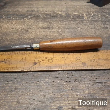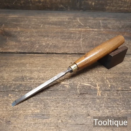Vintage ¼” F. Mills & Co. Ltd Carpenters Firmer Chisel with a Beechwood Handle, refurbished ready for use and in good used condition. All refurbished chisels are water cooled during the sharpening & flattening process to ensure the tempering is not affected.