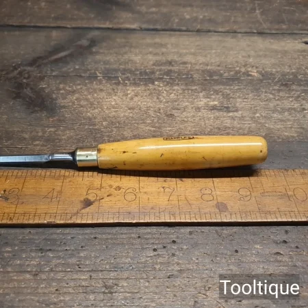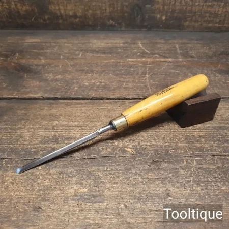 Vintage ¼” Marples Bevel Edge Chisel with a Boxwood Handle, refurbished ready for use and in good used condition. All refurbished chisels are water cooled during the sharpening & flattening process to ensure the tempering is not affected.