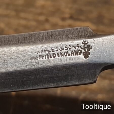 Vintage ¼” Marples & Sons Shamrock Bevel Edge Chisel with a Boxwood Handle, fully refurbished ready for use and in good used condition. All refurbished chisels are water cooled during the sharpening & flattening process to ensure the tempering is not affected.