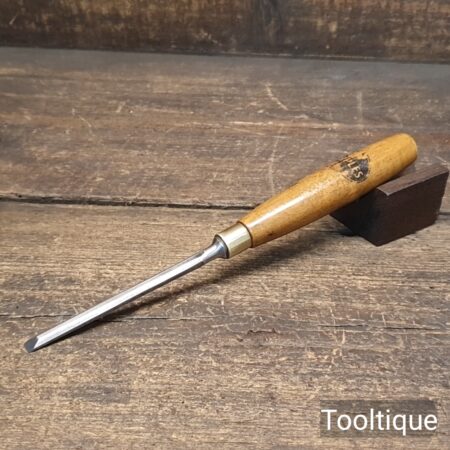 Vintage ¼” Marples & Sons Shamrock Bevel Edge Chisel with a Boxwood Handle, fully refurbished ready for use and in good used condition. All refurbished chisels are water cooled during the sharpening & flattening process to ensure the tempering is not affected.