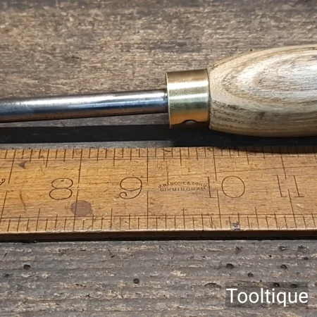 Vintage ¼” Woodturning Spindle HSS Gouge with an Ashwood Handle in good used condition. Note: Probably by Ashley Iles with sticker missing or Robert Sorby.