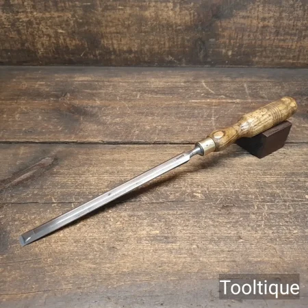 Vintage ½” Marples & Sons Shamrock Long Series Bevel Edge Paring Chisel with an Ashwood Handle, refurbished ready for use and in good used condition. All refurbished chisels are water cooled during the sharpening & flattening process to ensure the tempering is not affected.