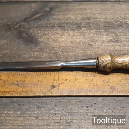 Vintage ½” Samson Socket Bevel Edge Chisel with an Ashwood Handle, refurbished ready for use and in good used condition. Note: Handle is Tight Fitting. All refurbished chisels are water cooled during the sharpening & flattening process to ensure the tempering is not affected.