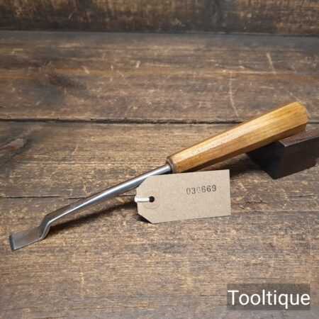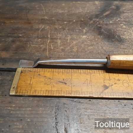Vintage ½” woodcarving stepped fishtail chisel with a beechwood handle sharpened ready for use and in good used condition.