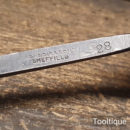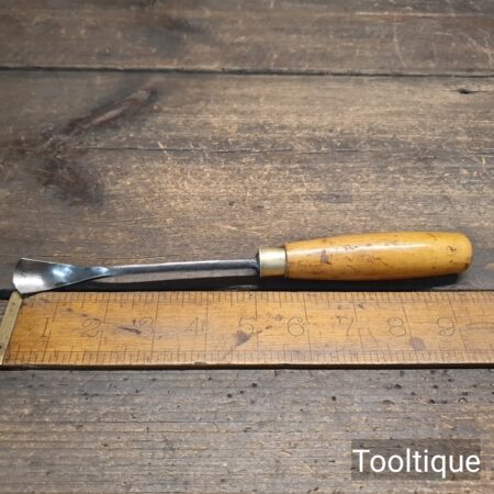 Vintage ¾” Wide J.B Addis No:28 Woodcarving Spoon Gouge Chisel with a Boxwood Handle in good used condition.