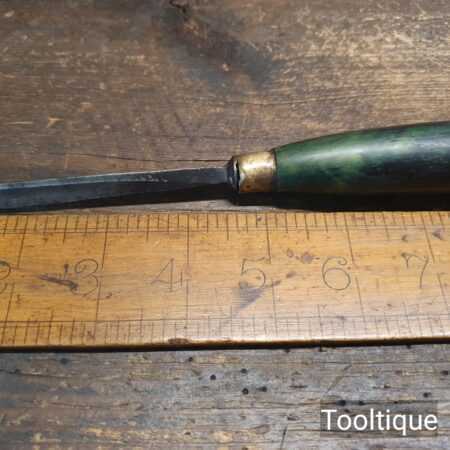 Vintage ⁵⁄₁₆” Henry Taylor Acorn Brand No:39 wood carving “V” parting chisel with beechwood handle in good used condition, fully refurbished sharpened and honed ready for use.