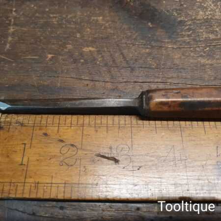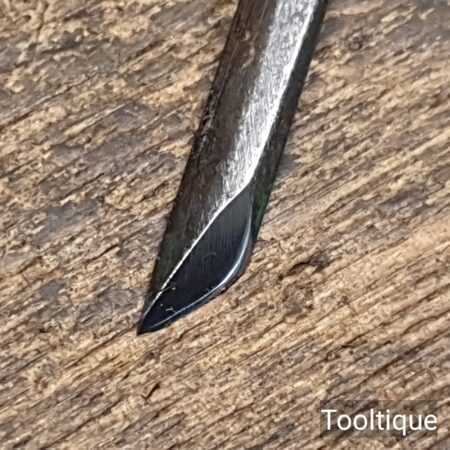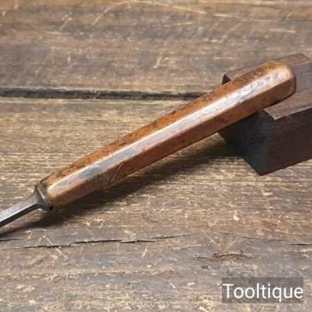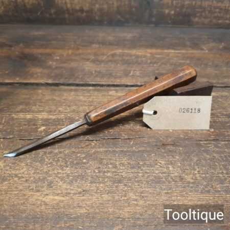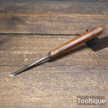 Vintage ⁷⁄₃₂” woodcarving skew flat chisel with an octagonal beechwood handle in good used condition, fully refurbished sharpened and honed ready for use.