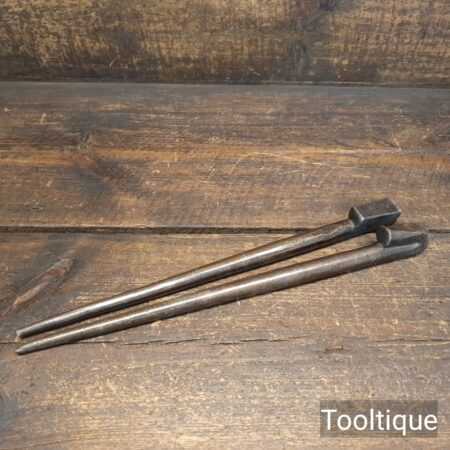 Vintage ⅝” pair of 13“ cast steel drawbore pins in good used condition and ready for use.