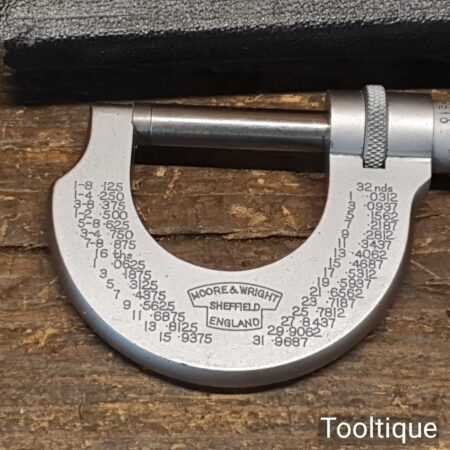 Vintage 0-1” Moore & Wright Sheffield No 961B micrometer in a case and in good used condition