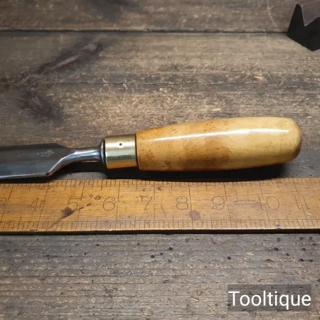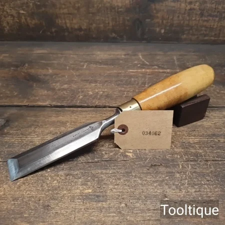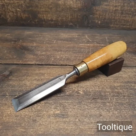 Vintage 1 ¼” Marples & Sons Carpenters Bevel Edge Chisel with a Boxwood Handle, refurbished ready for use and in good used condition. All refurbished chisels are water cooled during the sharpening & Flattening process to ensure the tempering is not affected.