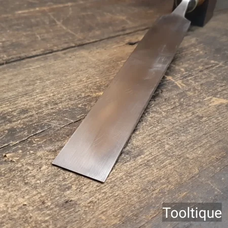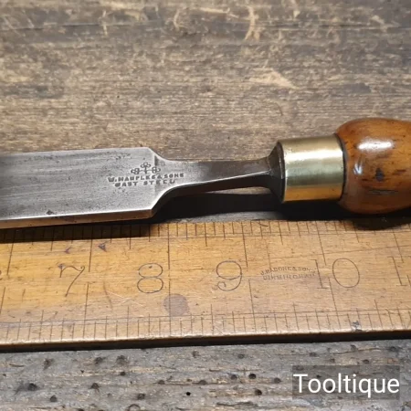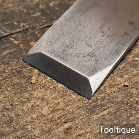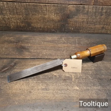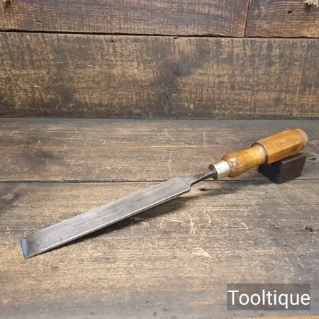 Vintage 1 ¼” Marples & Sons Long Series Firmer Chisel with a Boxwood Handle, fully refurbished ready for use and in good used condition. Note: Bevelled Tip and resin handle chip repair by previous user. All refurbished chisels are water cooled during the sharpening & face flattening process to ensure the tempering is not affected.