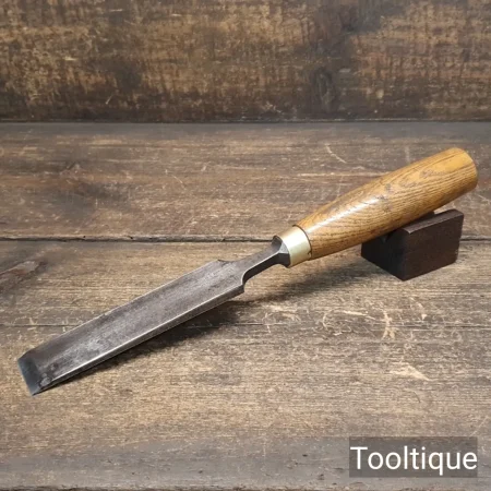 Vintage 1 ¼” Marples & Sons Shamrock Carpenters Firmer Chisel with an Ashwood Handle, refurbished ready for use and in good used condition. Note: Small Pitted area on top but this doesn’t affect its use, see images. All refurbished chisels are water cooled during the sharpening & face flattening process to ensure the tempering is not affected.
