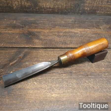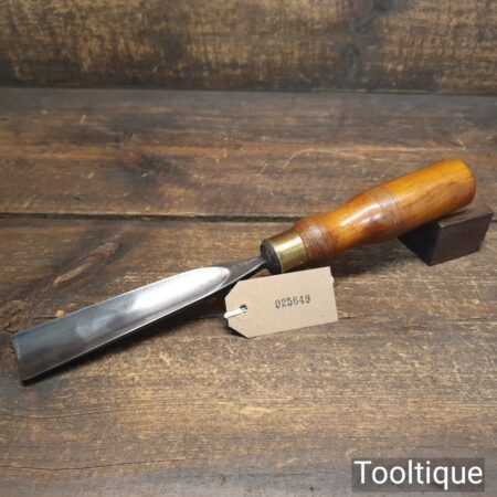 The chisel has been checked to ensure the tang is seated properly and the handle is solid and fit for use. All refurbished chisels are water-cooled during the sharpening process to ensure the tempering is not affected.