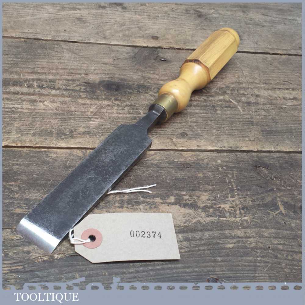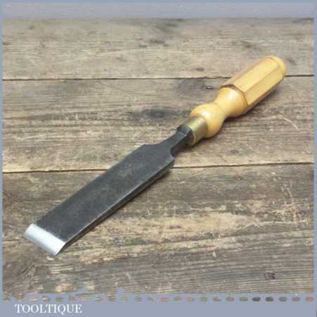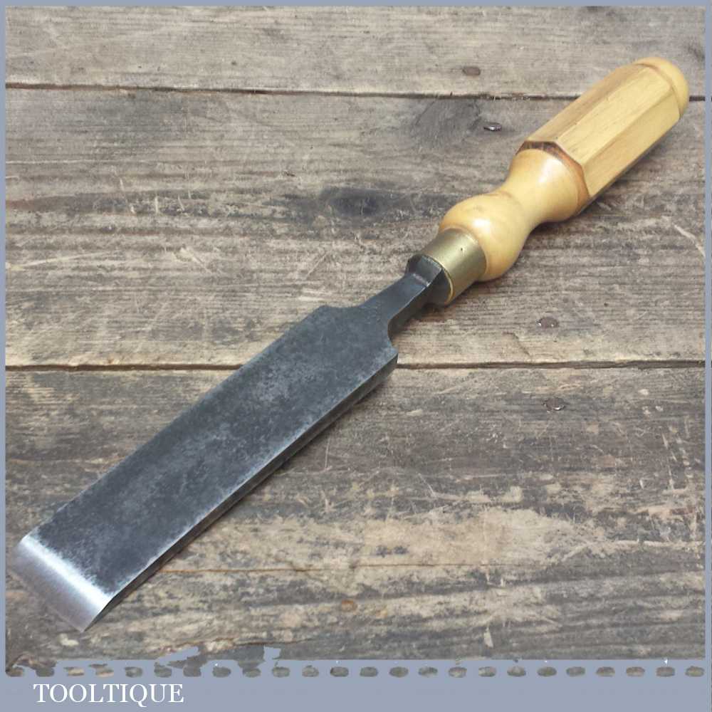 Vintage 1 ¼” wide Firmer chisel made in Sheffield by what looks to be T & H S, re-handled with new London pattern boxwood handle and has been sharpened and honed ready for use.