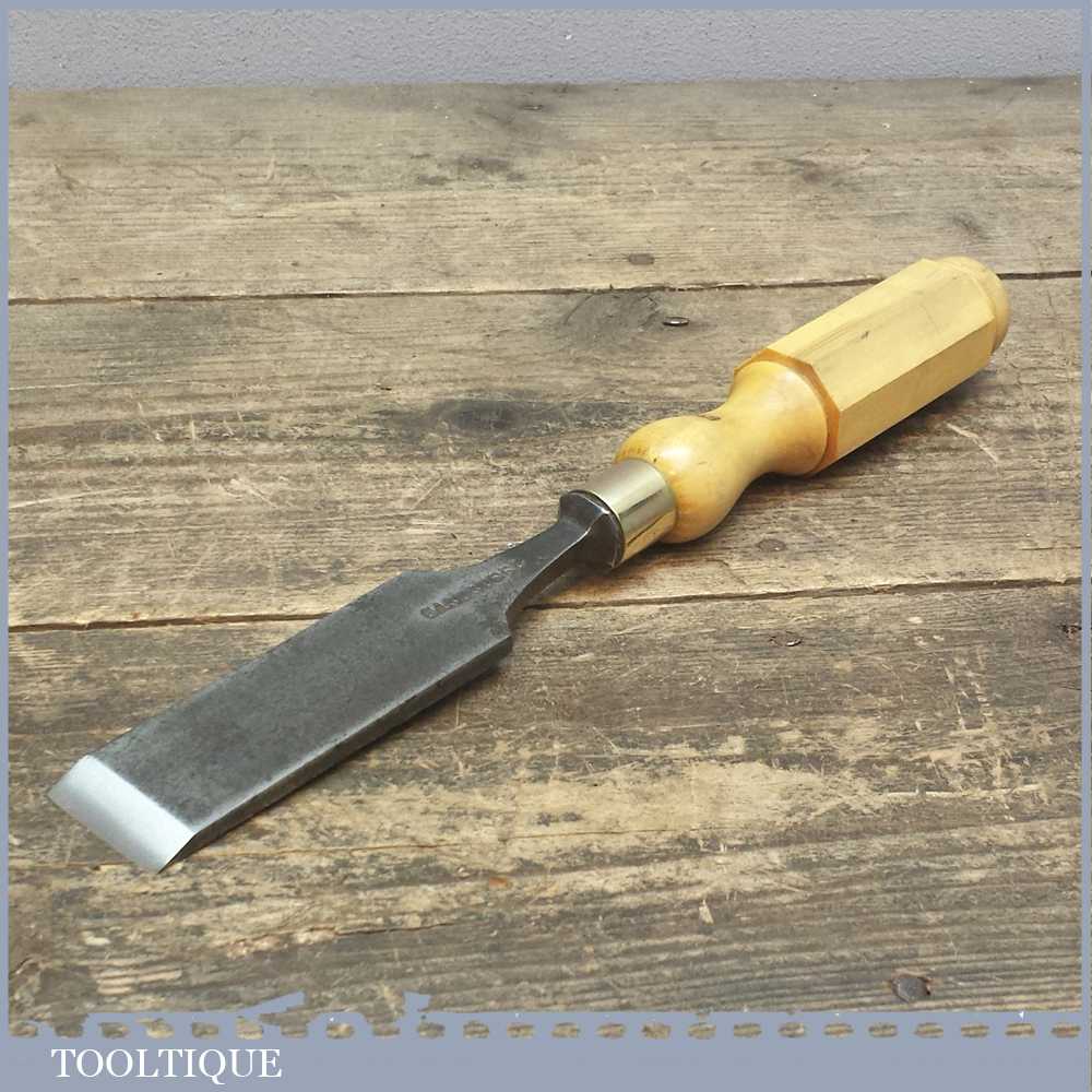 Vintage 1 ¼” wide Firmer chisel made in Sheffield by What looks to be Taylor, re-handled with new London pattern boxwood handle and has been sharpened and honed ready for use.