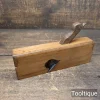 Vintage 1 ½” Carpenters Skew Iron Beechwood Rabbet Plane refurbished ready for use and in good used condition. Note: Lapped Flat parallel to top, Straightened warped Sides and sharpened & flattened Iron. It works well now but required more work than I initially thought before starting it.