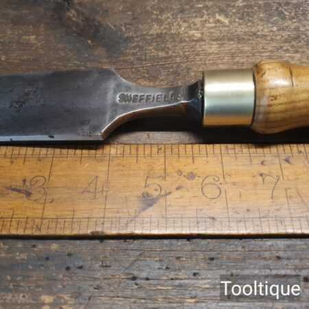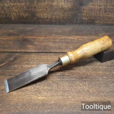The chisel has been checked to ensure the tang is seated properly and the handle is solid and fit for use. All refurbished chisels are water cooled during the sharpening & flattening process to ensure the tempering is not affected.