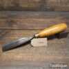 The chisel has been checked to ensure the tang is seated properly and the handle is solid and fit for use. All refurbished chisels are water-cooled during the sharpening process to ensure the tempering is not affected.