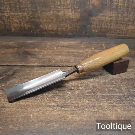 Vintage 1 1/8” Thomas Ibbotson Gouge Chisel with an Ashwood handle fully refurbished ready for use and in good used condition. The chisel has been checked to ensure the tang is seated properly and the handle is solid and fit for use. All refurbished chisels are water cooled during the sharpening process to ensure the tempering is not affected.