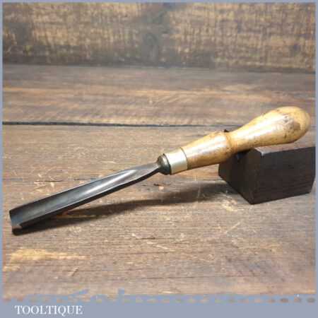 Vintage 1/2” No: 19 straight woodcarving deep gouge chisel with boxwood handle in good used condition, fully refurbished sharpened and honed ready for use.