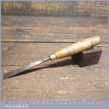 Vintage 1/2” straight woodcarving gouge chisel with beechwood handle in good used condition, fully refurbished sharpened and honed ready for use.