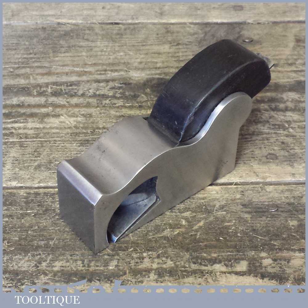 Vintage 1 3/16” wide cast steel bull nose plane with rosewood infill wedge and in good used condition, flat and sharp ready to use.