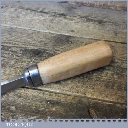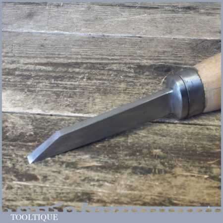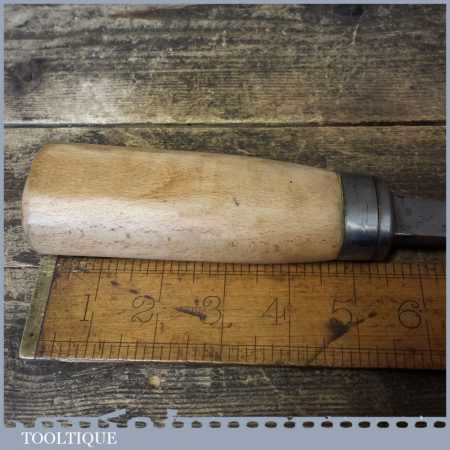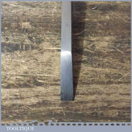 The chisel has been checked to ensure the tang is seated properly and the handle is solid and fit for use. All refurbished chisels are water cooled during the sharpening process to ensure the tempering is not affected. These old cast steel chisels are hand forged and far superior in quality because of the high carbon steel that was used which produces a keener edge, this was also generally used throughout the full length.
