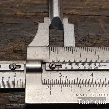 The chisel has been checked to ensure the tang is seated properly and the handle is solid and fit for use. All refurbished chisels are water-cooled during the sharpening process to ensure the tempering is not affected.