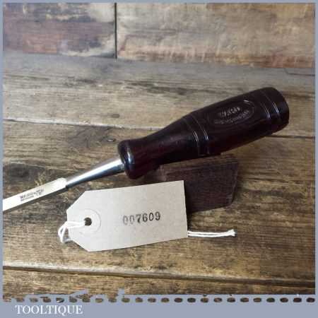 Scarce vintage 1/4” Shatterproof HSS firmer chisel by Ward & Payne of Sheffield marked Patent Pending in good used condition. The chisel has been sharpened and honed and is ready for use. These were the original type that Marples reproduced as the M373.