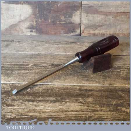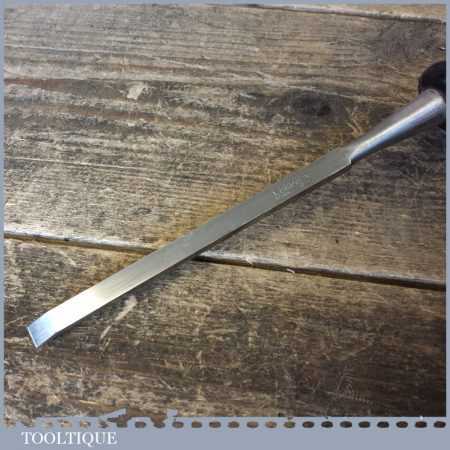 The chisel has been checked to ensure the tang is seated properly and the handle is solid and fit for use. All refurbished chisels are water cooled during the sharpening process to ensure the tempering is not affected. These old cast steel chisels are hand forged and far superior in quality because of the high carbon steel that was used which produces a keener edge, this was also generally used throughout the full length.