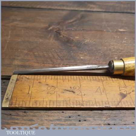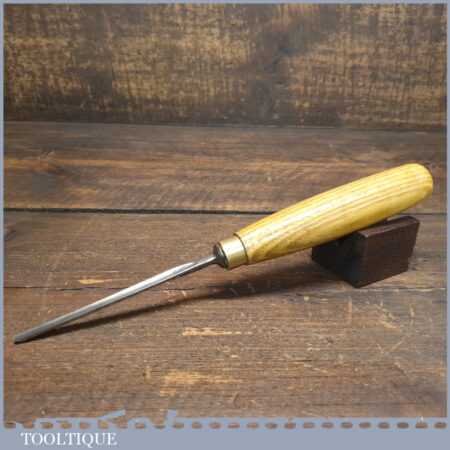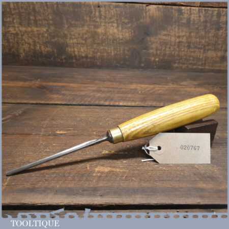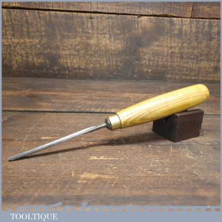 Vintage 1/4” straight woodcarving gouge chisel with ash handle in good used condition, fully refurbished sharpened and honed ready for use