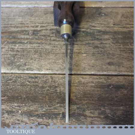 Nice Vintage 1/8” cast steel fine Mortice chisel with reinforced rosewood handle in good used condition, fully refurbished sharpened and honed ready for use. Probably made by Marples as the handle is a replacement.