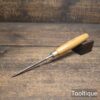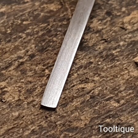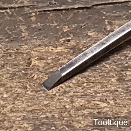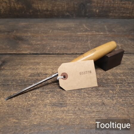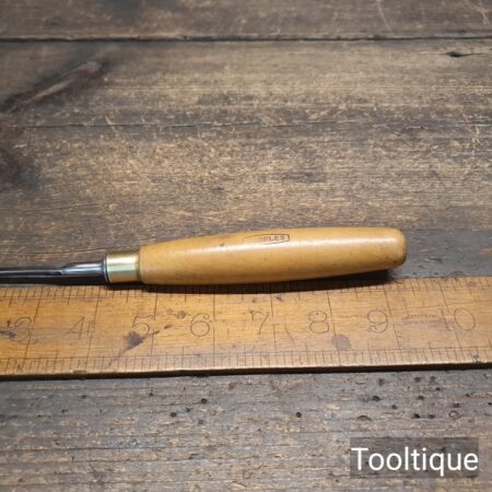 Vintage 1/8” Marples Carpenters Bevel Edge Chisel with a Boxwood Handle, refurbished ready for use and in good used condition. Note: These small sizes are rarely found in a good length. All refurbished chisels are water cooled during the sharpening & flattening process to ensure the tempering is not affected.