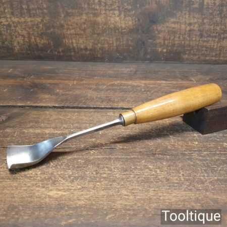 Vintage 1” Ashley Iles woodcarving spoon gouge chisel with beechwood handle in good used condition, fully refurbished sharpened and honed ready for use.