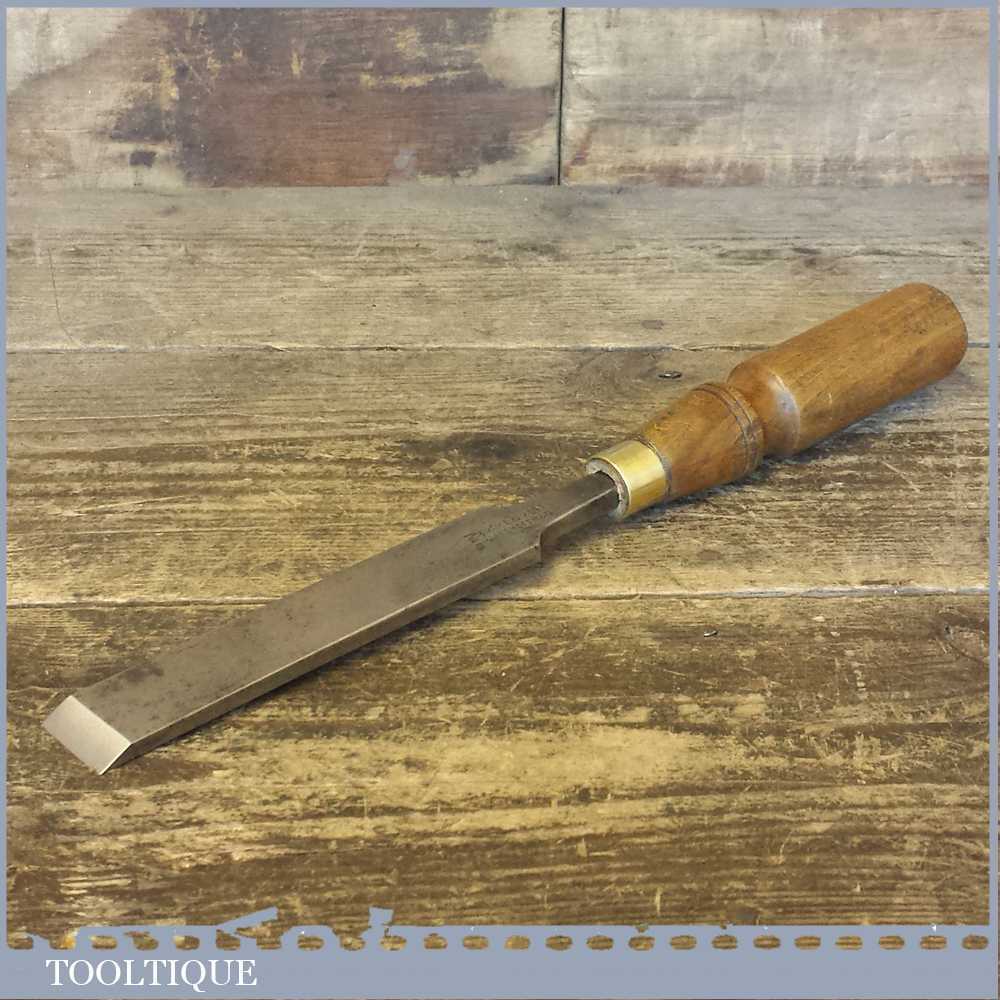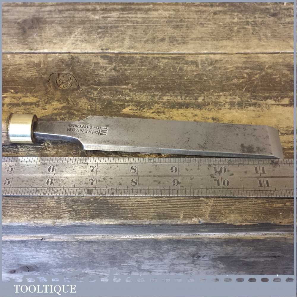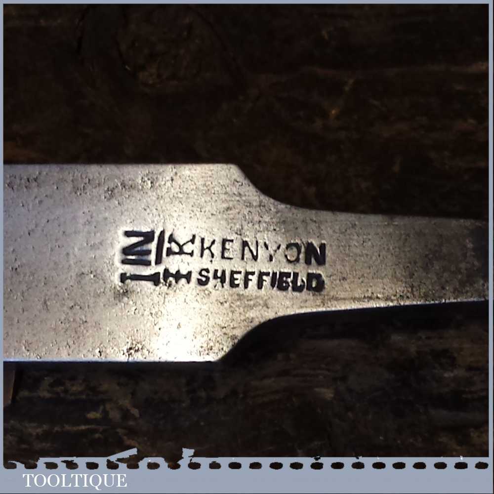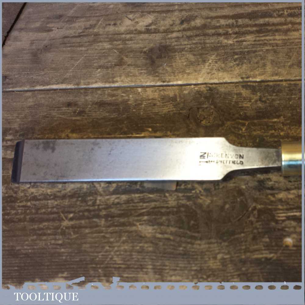 Vintage 1” firmer chisel by Kenyon of Sheffield and in good used condition. The chisel has been sharpened and honed but would benefit from being removed from the handle and having a stop washer being added to the tang if any major force is needed, this is why the handle has a small crack near the ferule.