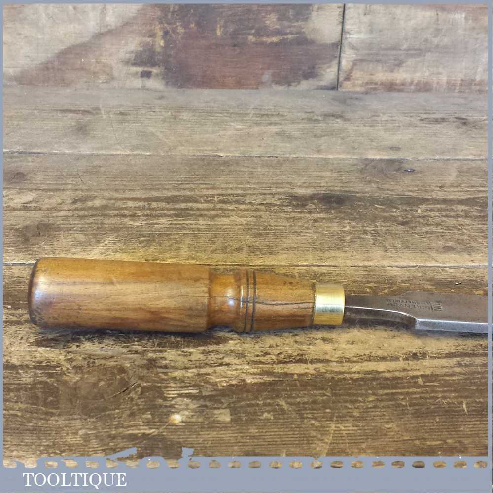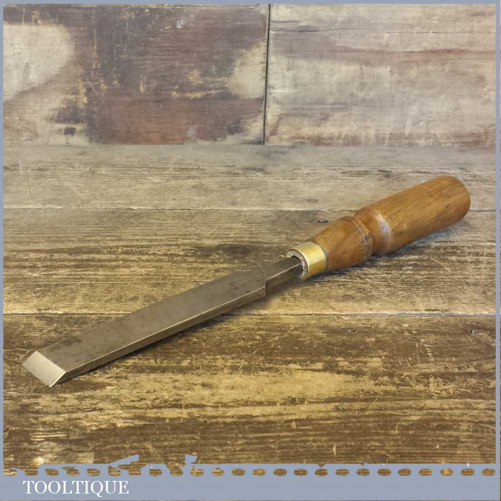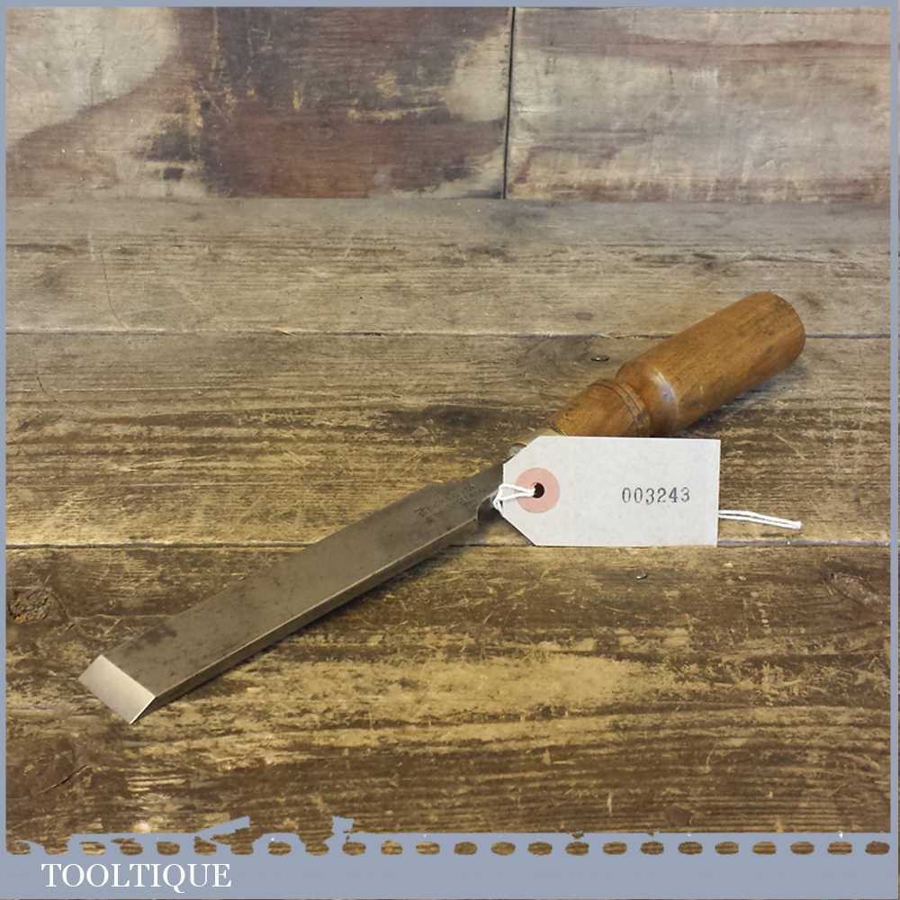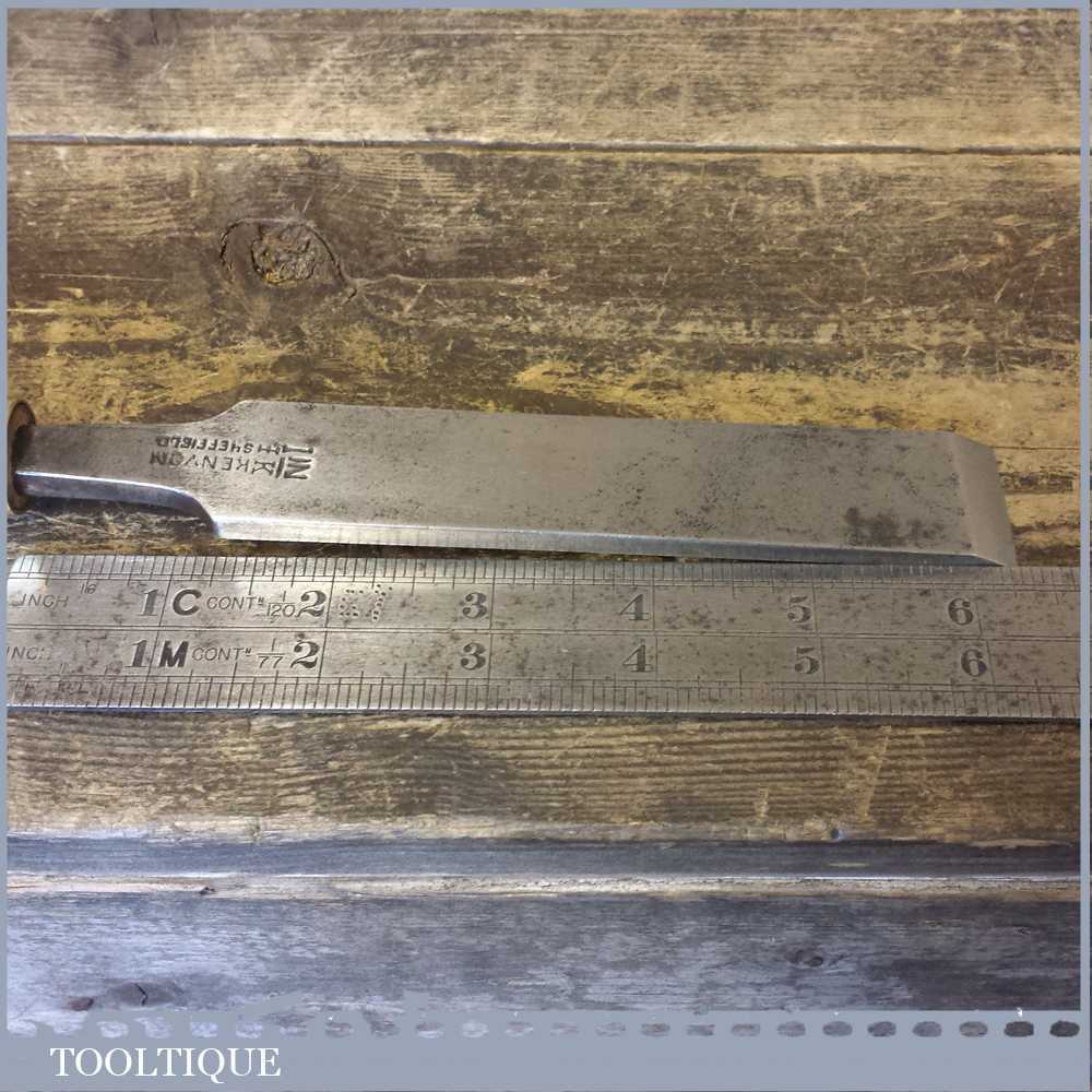 Vintage 1” firmer chisel by Kenyon of Sheffield and in good used condition. The chisel has been sharpened and honed but would benefit from being removed from the handle and having a stop washer being added to the tang if any major force is needed, this is why the handle has a small crack near the ferule.