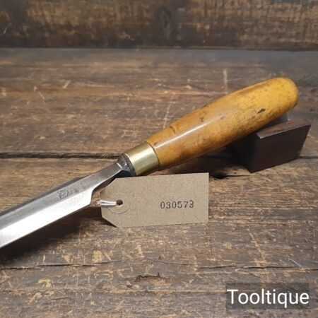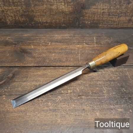 The chisel has been checked to ensure the tang is seated properly and the handle is solid and fit for use. All refurbished chisels are water-cooled during the sharpening process to ensure the tempering is not affected.