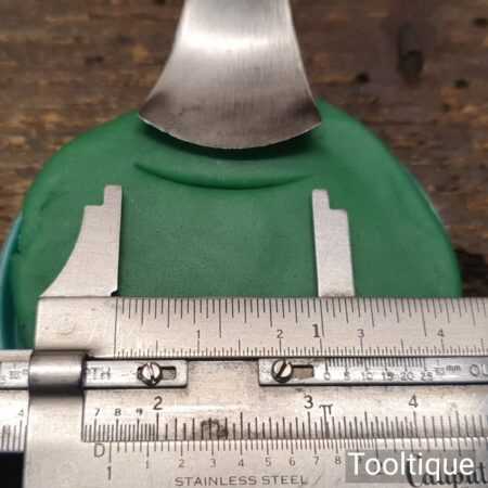 The chisel has been checked to ensure the tang is seated properly and the handle is solid and fit for use. All refurbished chisels are water-cooled during the sharpening process to ensure the tempering is not affected.