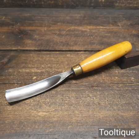Vintage 1” J.B. Addis & Sons No: 16 woodcarving curved gouge chisel with beechwood handle in good used condition, fully refurbished sharpened and honed ready for use.
