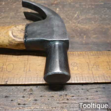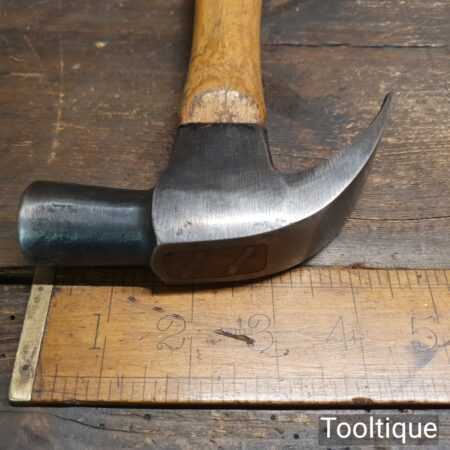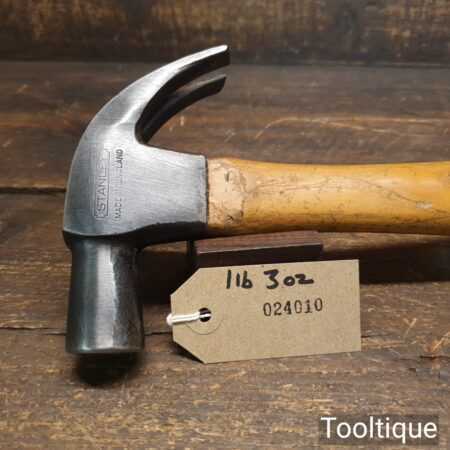 Vintage Stanley cast steel claw hammer with hickory handle in good used condition.