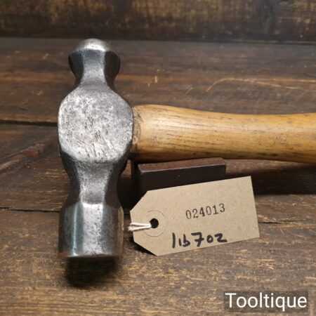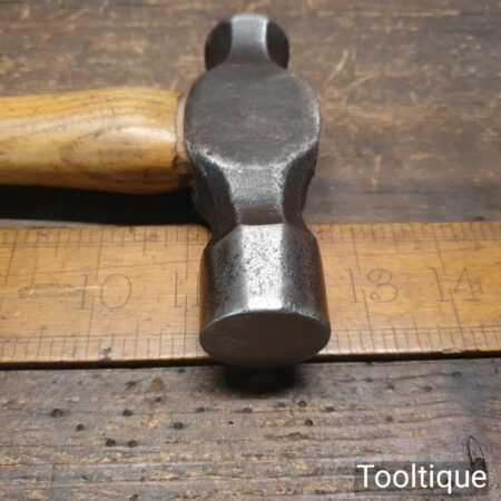 Vintage 1 lb 7 oz ball pein hammer with wooden handle, in good used condition.