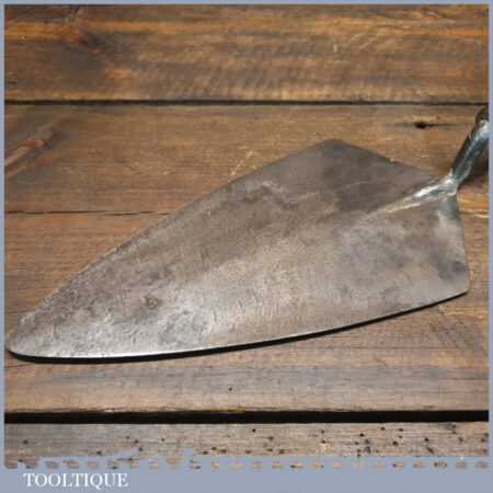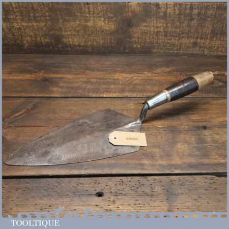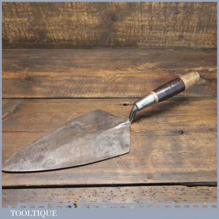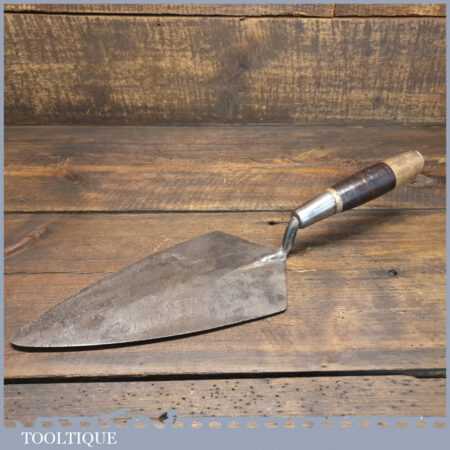 Vintage 10 ½” Bricklayers Trowel with leather bound and beechwood handle in good used condition.