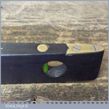 Vintage 10” brass and ebony boat level in good used condition. Note: the level hasn’t been tested and may require resetting in putty if intended for use.