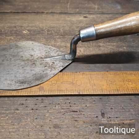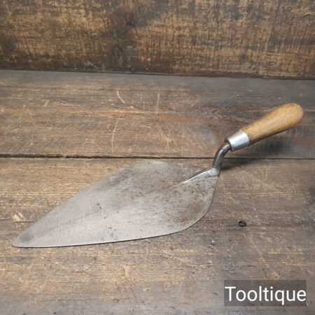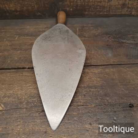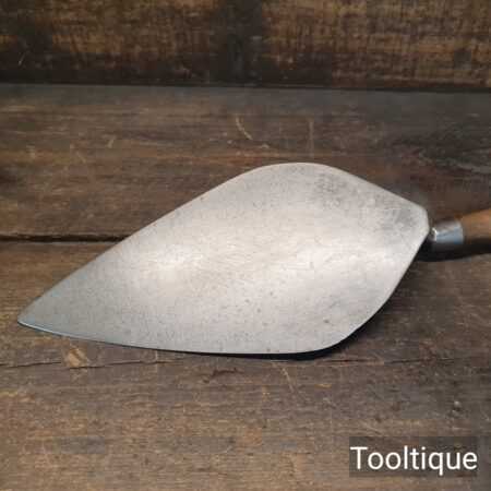 Vintage 10” bricklayer’s trowel with a hardwood handle, refurbished ready for use and in good used condition. Note: Edges redressed.