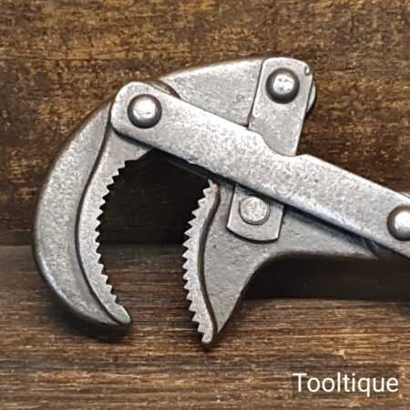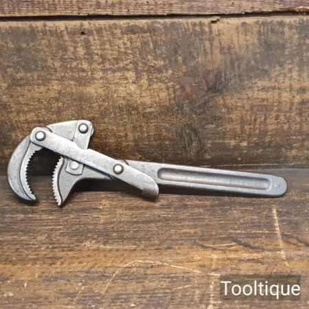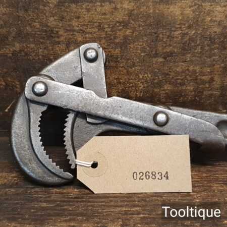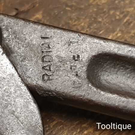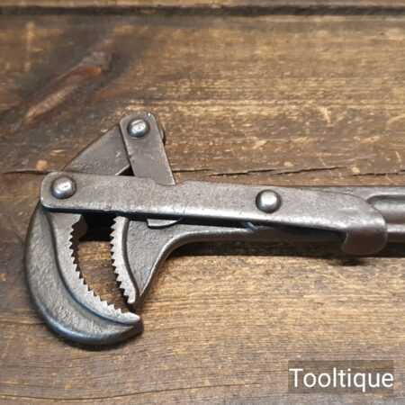 Vintage 10″ cast steel Radial parrot-nose pipe wrench in good used condition.
