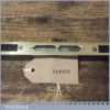 Vintage 10” ebony and brass spirit level with original clear bubble tube in good used condition. Note: the level hasn’t been tested and may require resetting in putty if intended for use.