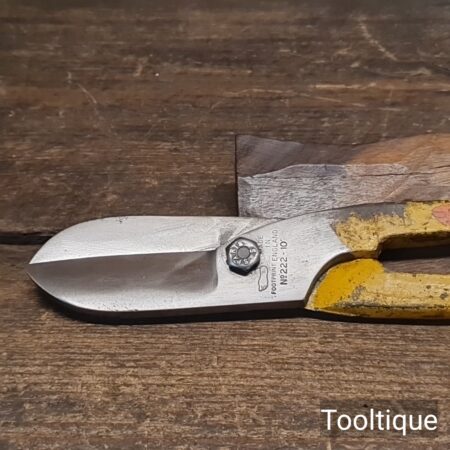 Vintage 10” Footprint of Sheffield Tinman’s Flat Tin Snips, Refurbished Ready for use and in good used condition. Note: Sharpened and cut like a new pair.