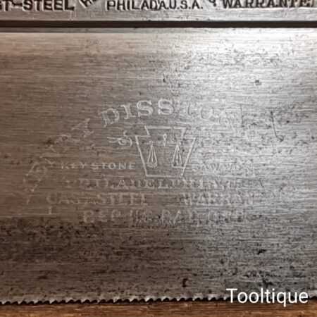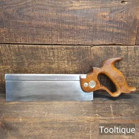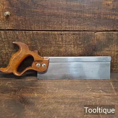 Vintage 10” Henry Disston Philadelphia 14 Tpi Steel Back Dovetail Saw sharpened Rip, fully refurbished ready for use and in good used condition. The steel in these Disston saws is superb, they are hard on the file yet supple enough to set and in my opinion has never been replicated. Note: Looks like the handle has been replaced with a later USA handle because it’s not applewood. Ticket no: 31129.