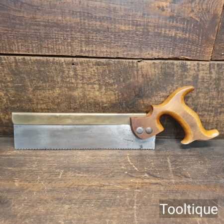 Vintage 10” Joseph Tyzack 1920’s ‘Bowdon & Co.’ Brass Back 11 Tpi cross cut saw with a pistol grip beechwood handle, fully refurbished ready for use and in good used condition.