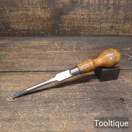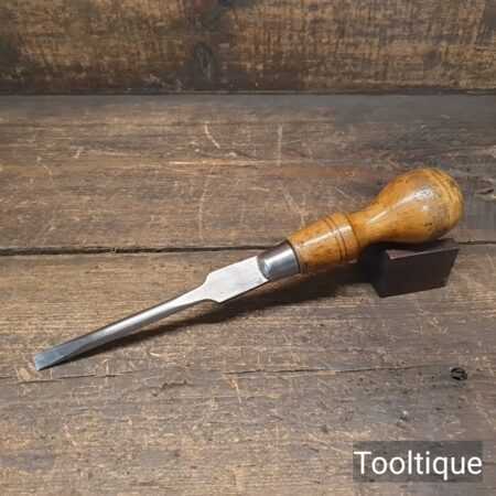 Vintage 10” Sheffield 3/8” Flat End Screwdriver with a beechwood handle, refurbished ready for use and in good used condition. Note: The head has been redressed.